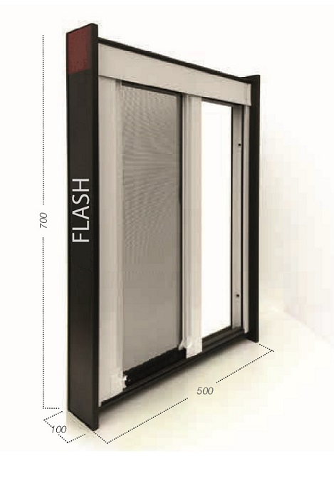 Campione compatto che permette l’esposizione di un prodotto alloggiato in una struttura di alluminio.