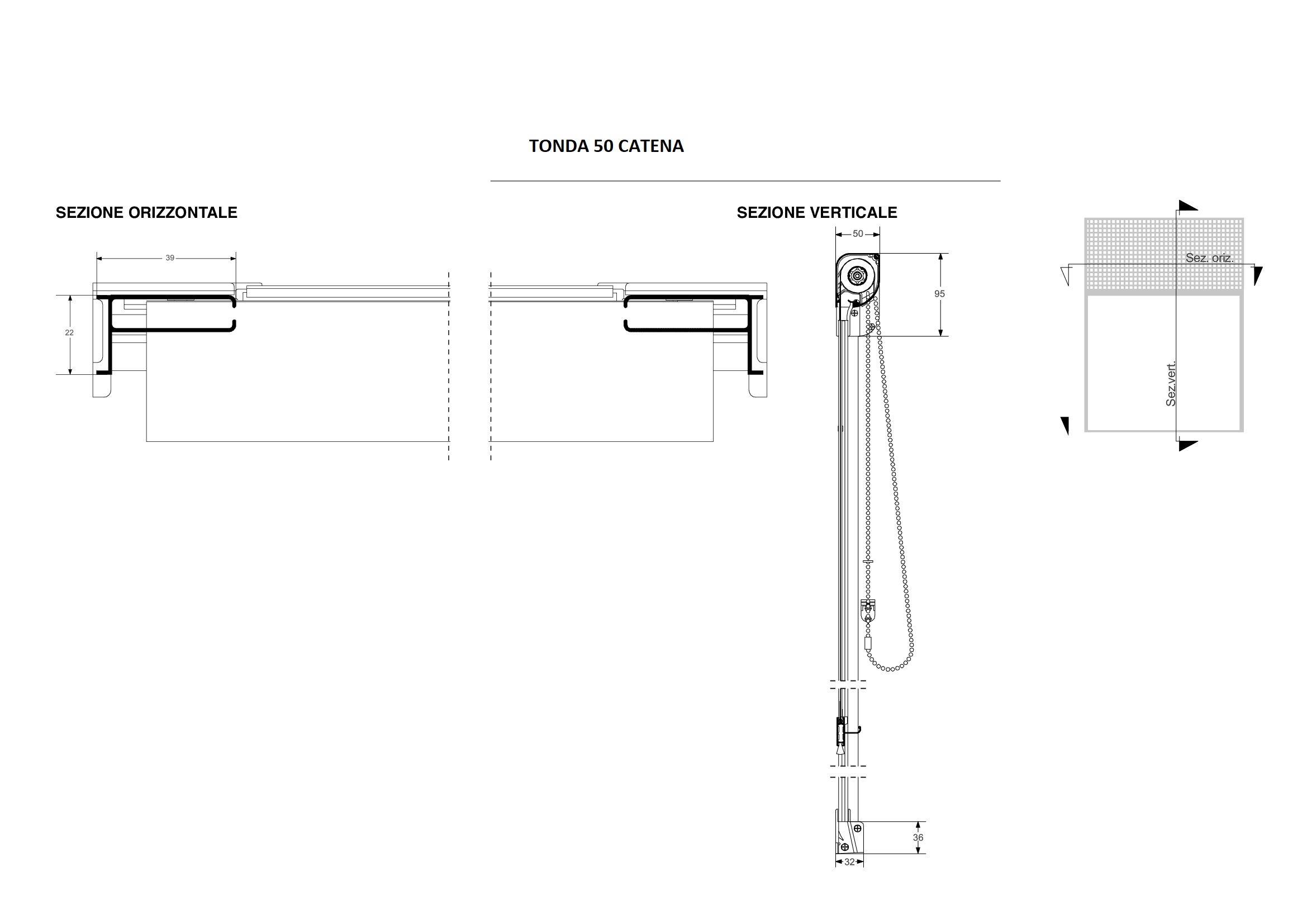 Le dimensioni della Tonda 50 Catena devono essere trasmesse in mm indicando base x altezza, specificando se trattasi di misura finita o luce.